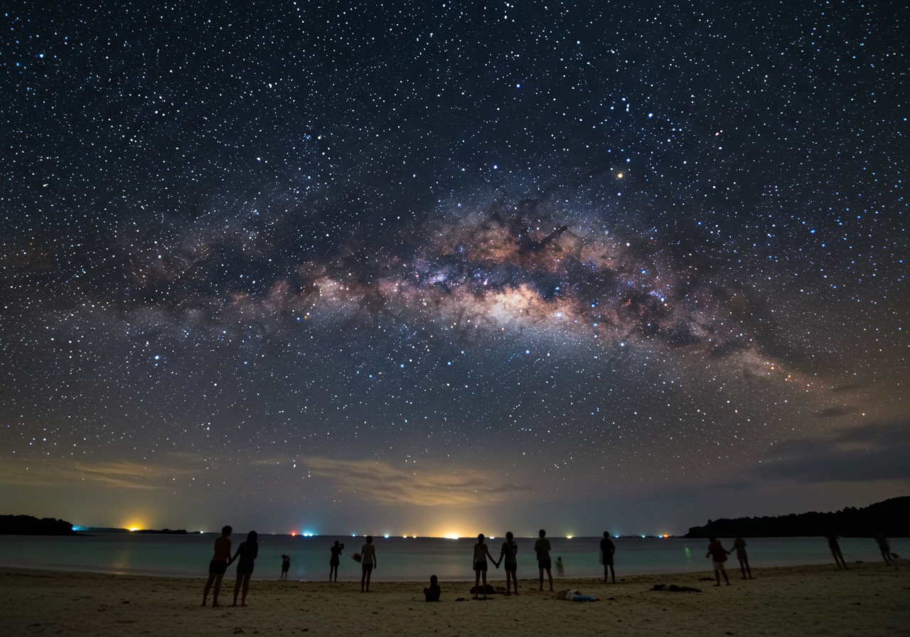 私が(あたかも)体験したツアーでは、まずガイドさんに連れられて、街の明かりが届かない秘密のビーチへ。車を降りて空を見上げた瞬間…思わず「うわぁ…!」って声が漏れました。