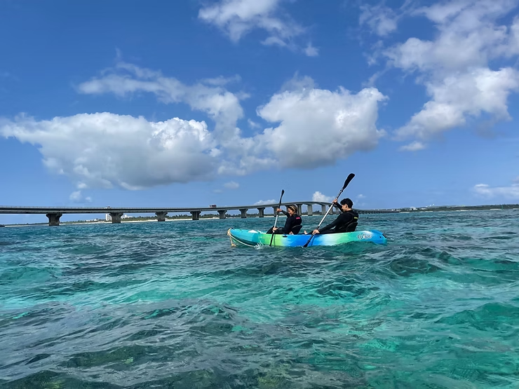 宮古島と下地島の間にかかる全長1,690mの来間大橋。その橋を渡った先にある小さな島「来間島(くりまじま)」は、周囲約8〜9kmのちょうどいいサイズ。実はこの島をカヤックでぐるっと一周できる、めちゃくちゃアクティブなツアーがあるんです! アクティブ... -