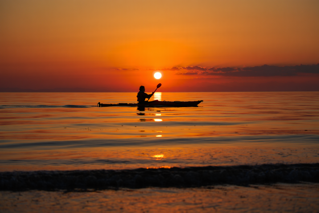 the final moments of the day from the surface of the sea, by kayak.